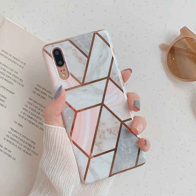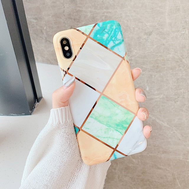 Plating Geometric Marble Phone Case